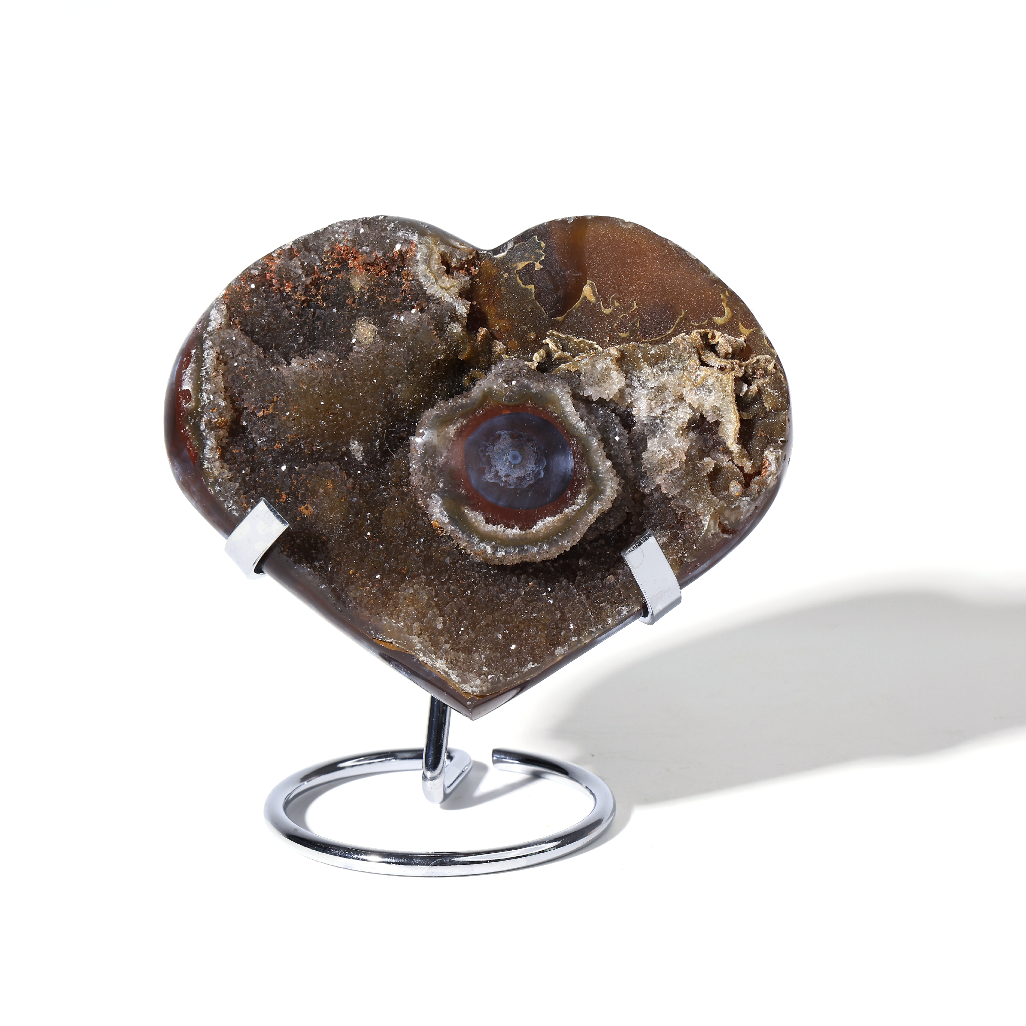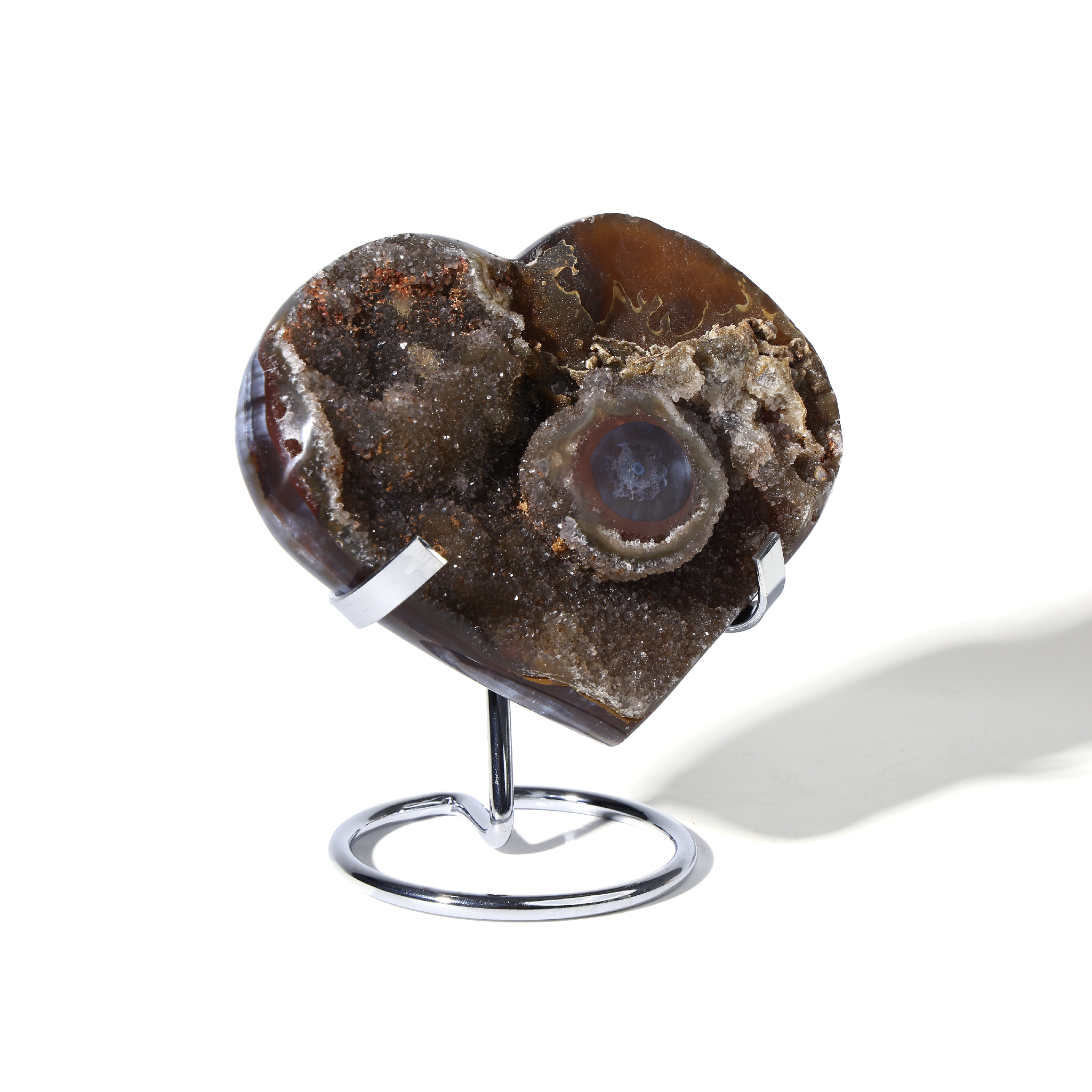 This extraordinary celestial formation from Uruguay’s Artigas region presents a geological marvel where cosmic symbolism meets rare mineral perfection. At the heart of the deep amethyst geode, a remarkable eye-like pattern naturally emerges – formed by contrasting mineral deposits that create the illusion of a cosmic pupil gazing from the crystal depths. The specimen’s dark purple background sparkles with countless crystal points resembling a star-filled universe, while the central “eye” appears to hold ancient wisdom within its crystalline structure. Personally curated by our founder from among five hundred similar specimens, this rare configuration represents one of nature’s most powerful abundance symbols. The eye formation displays complete geometric precision, with concentric mineral rings radiating outward like cosmic energy waves. In crystal traditions across cultures, such natural eye formations have been revered as powerful talismans for attracting opportunity and maintaining positive outlooks. The specimen’s exceptional rarity and symbolic presence make it a significant acquisition for collectors seeking both geological uniqueness and inspirational significance. Product Safety & Nature Notice Thank you for choosing our natural crystal specimens. Please be aware that each piece is a unique gift from nature. By purchasing and collecting, you acknowledge and agree to the following points: 1. Safety First: This is a natural mineral specimen, not a toy. Edges may be sharp, and pieces can be fragile. Always keep out of reach of children and pets to prevent potential injury, swallowing, or harm. 2. Natural Characteristics: Inclusions such as internal fractures, ice cracks, clouds, pits, and other mineral formations are natural and inevitable during crystal growth. These natural imprints are not defects but proof of authenticity and uniqueness. Returns or exchanges will not be offered for these features. 3. Size Tolerance: As each specimen is unique and measured by hand, please allow for a reasonable sizing tolerance of approximately 1-3 cm. 4. Handling Care: Handle with care during observation. Avoid forceful impacts or drops. For cleaning, use soft tools and store the specimen securely. 5. Description & Imagery: We strive to accurately describe and photograph each specimen. However, due to the natural nature of the product and variations in lighting/screens, the actual item you receive may have slight variations in colour, form, or inclusions. Please consider the images as a guide. For any other questions, please refer to the detailed 【READ BEFORE YOU BUY IT】 on the product page or contact our customer service team.