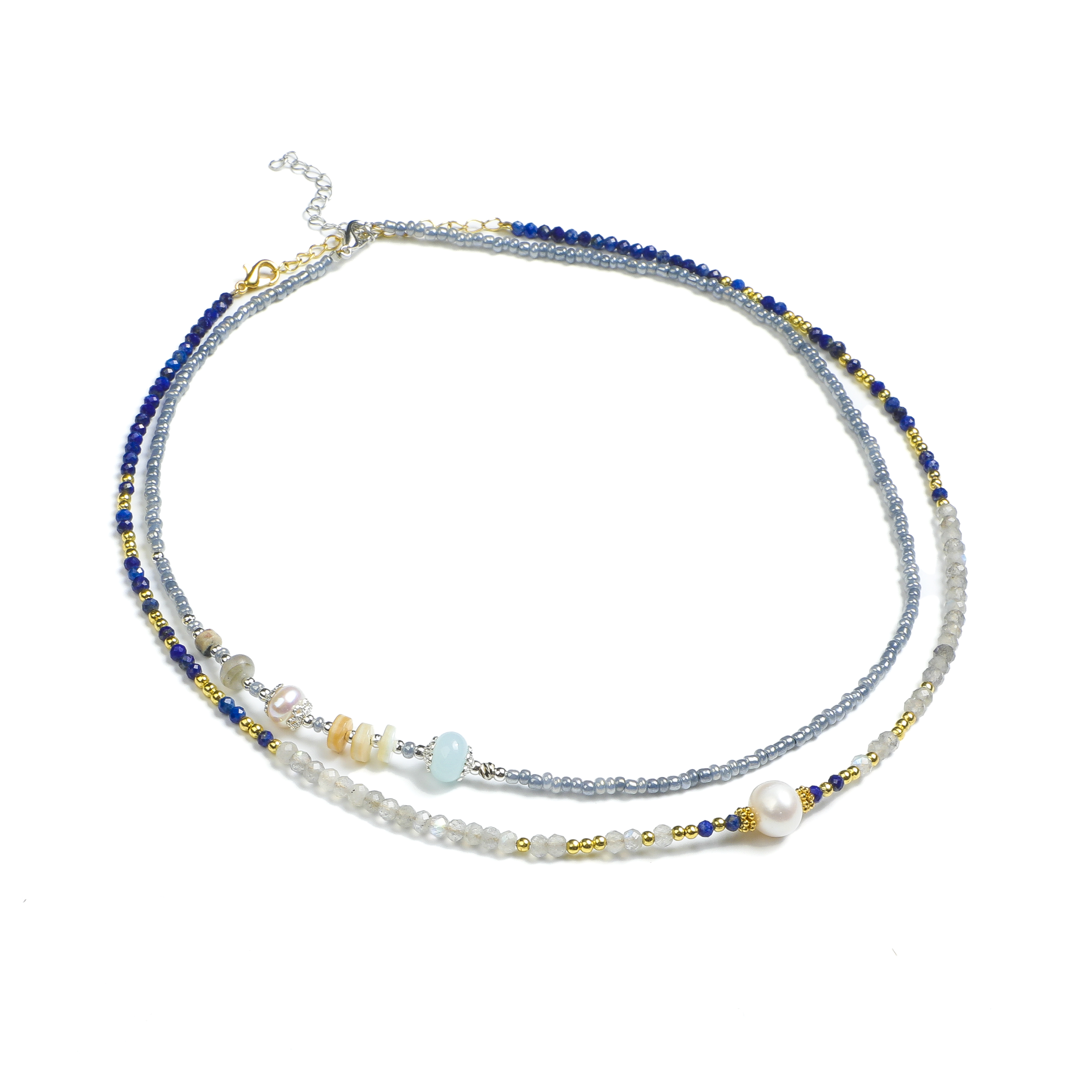 Zen Double-Strand Lapis Lazuli and Natural Pearl Necklace