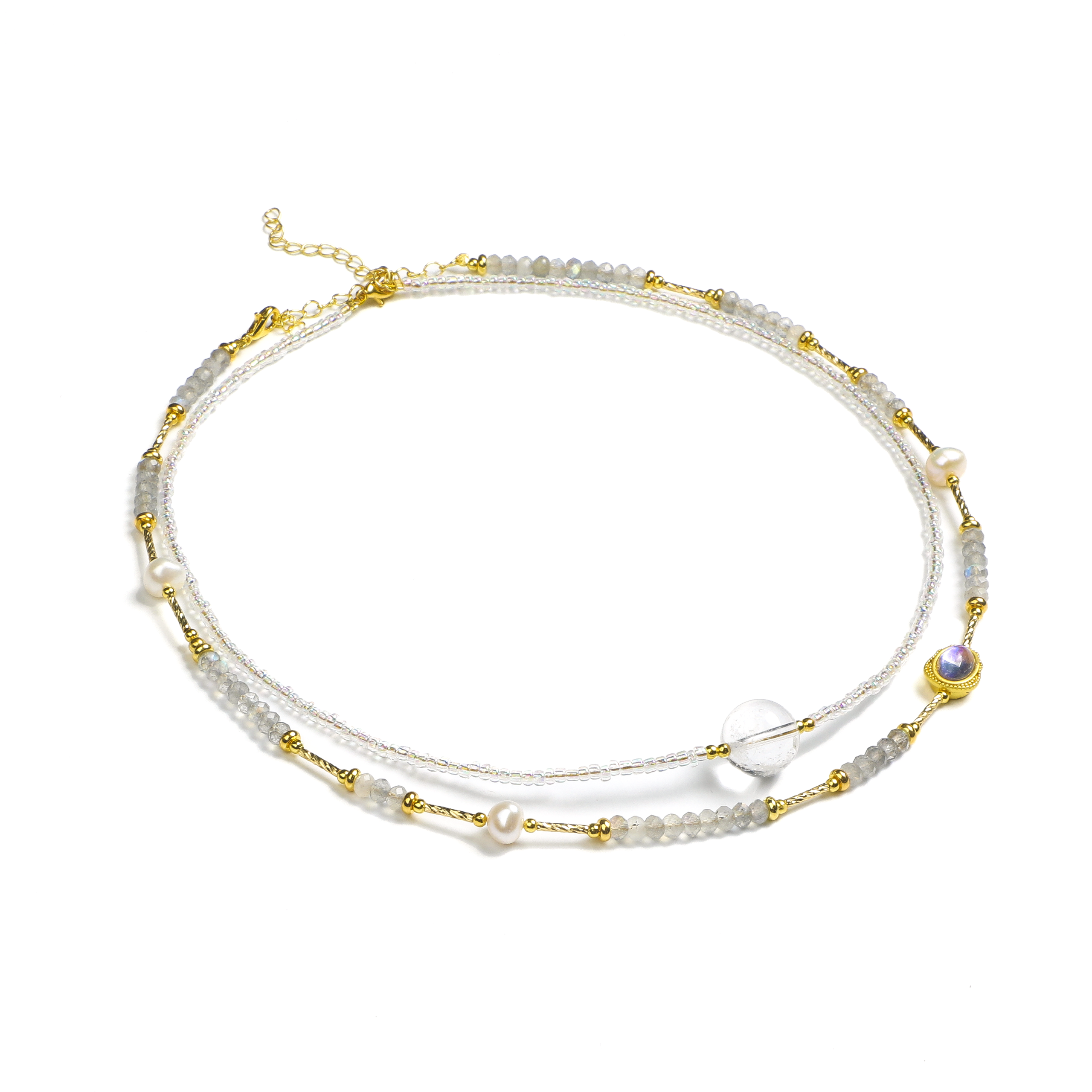 Zen Double-Strand Smoky and Amethyst Crystal Necklace