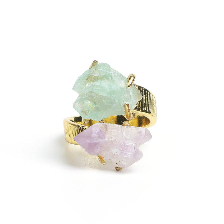 The double-end design offers complete styling freedom, allowing wearers to choose between amethyst's classic elegance or prehnite's refreshing style according to the occasion. The minimalist open ring accommodates various finger sizes, making it suitable for both formal dinners and casual gatherings while expressing distinctive personal taste.
