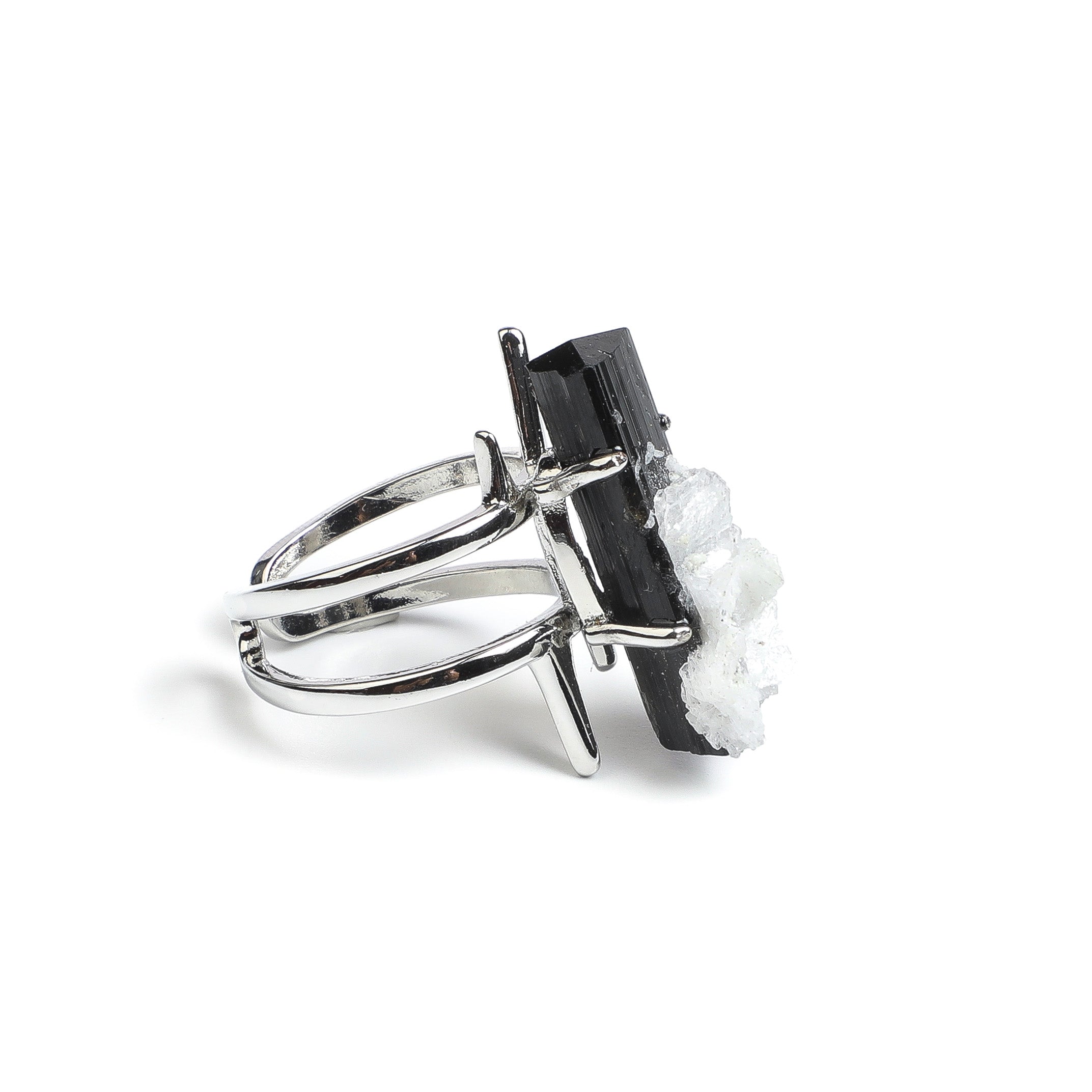 This distinctive creation brings together white calcite personally collected from the Italian Alps and black tourmaline sourced from Brazil's Batatalia mine. Each raw crystal preserves its purest geological form, meticulously hand-set by artisans to maintain the unique contours shaped by nature over millennia. As wearable mineral specimens, they embody the Eastern philosophical concept of "learning from nature" in aesthetic expression. The calcite symbolizes mental clarity and new beginnings, while the tourmaline represents protective energy and stability.