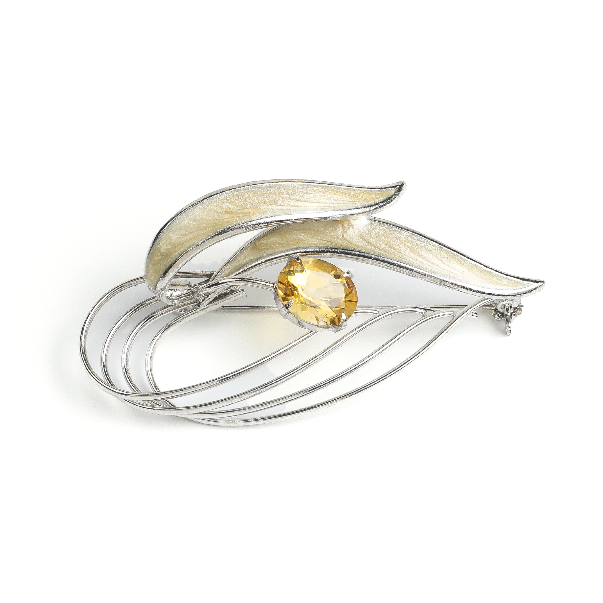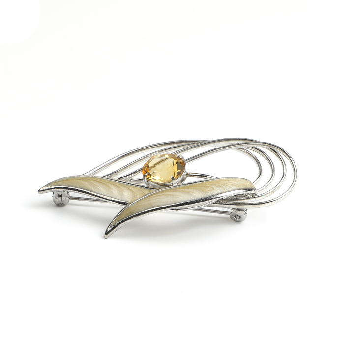 In Eastern tradition, citrine symbolizes wisdom and abundance, with the flowing design expressing admiration for nature's rhythm. It accents coat lapels or knitwear, adding lively elegance to daily wear. Each piece is handcrafted by artisans, where slight glaze variations and age marks become distinctive features.