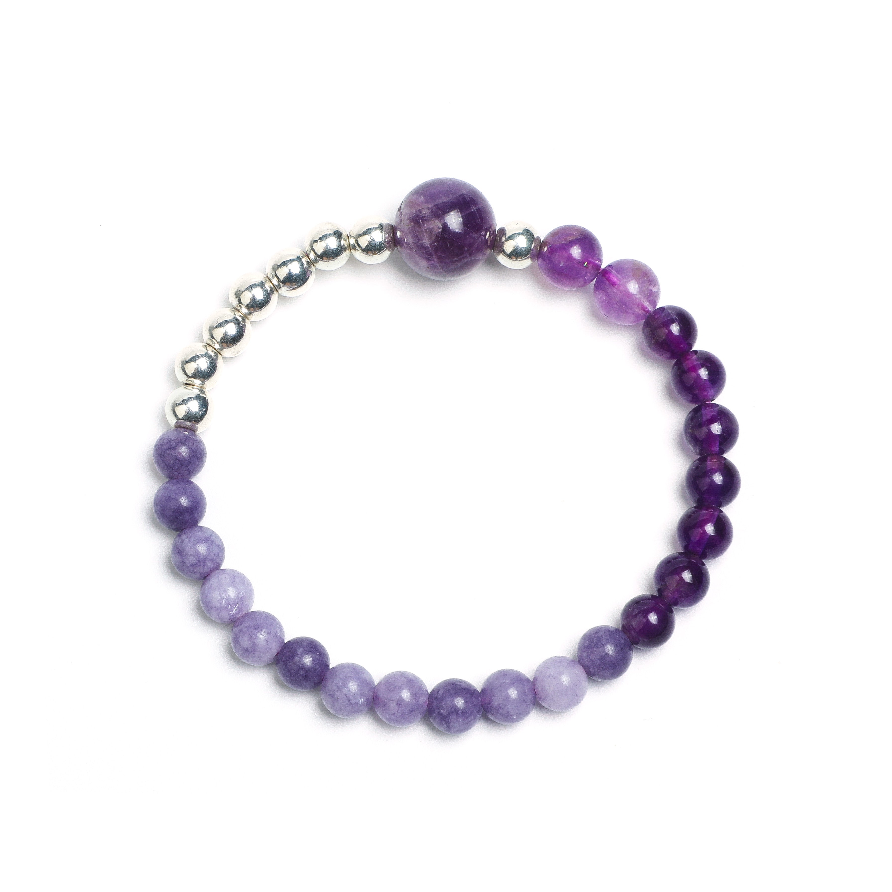 Featuring natural amethyst from multiple Uruguayan mining layers and precision-cast German silver beads, this artful beaded piece showcases a masterful color transition. The natural shift from delicate lavender to deep grape purple, interspersed with subtle silver accents, creates an elegant and mysterious overall ambiance.