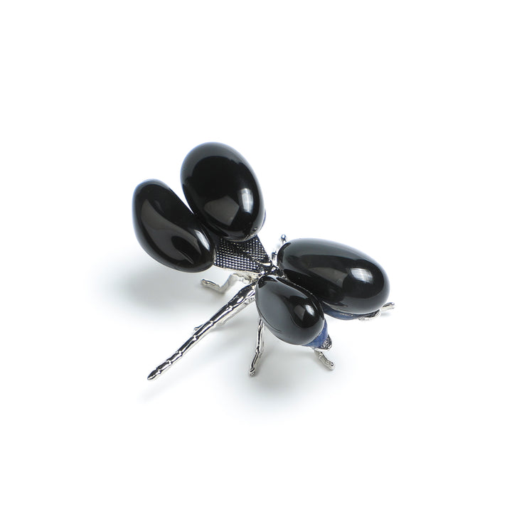 This unique sculpture uses Mexican obsidian to depict a dragonfly's protective posture. The wings' deep black color and natural iridescence create mysterious contrast. The body combines polished and raw surfaces, set on lava bedrock. In Western traditions, dragonflies are regarded as representing protection and courage. Suitable for entryways and studios, it offers spiritual guardianship for creators needing strength support.