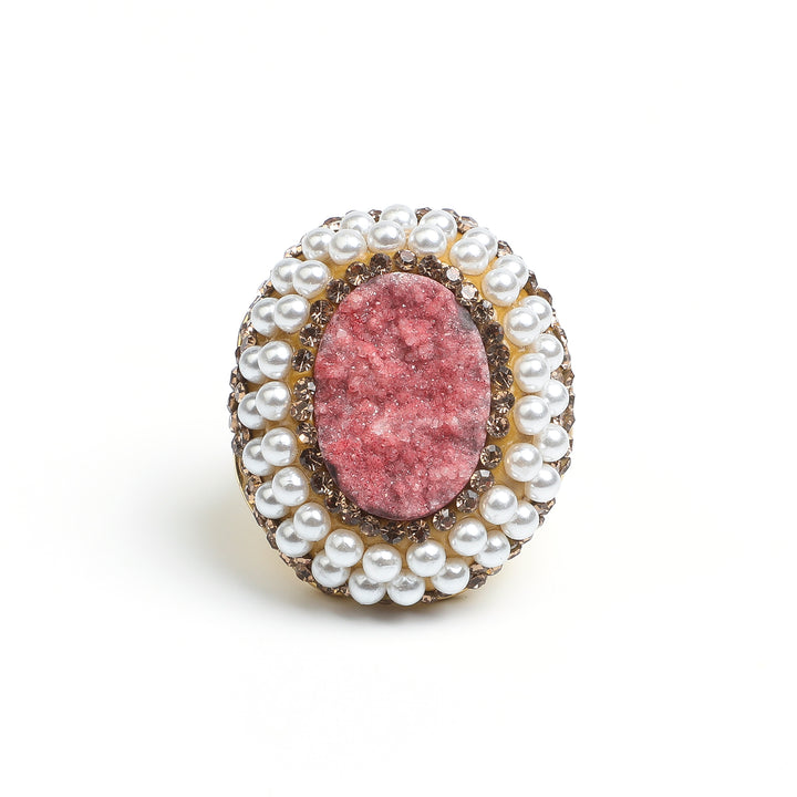 An Asian artist's reinterpretation of Victorian epistolary tradition finds exquisite expression through master artisans' dedicated craftsmanship, embodying ARTLUMINNA's philosophy of uniting historical romance with contemporary elegance. This enchanting ring features Mozambican pink apatite and luminous Japanese pearls arranged in a sophisticated composition that echoes the delicate aesthetics of sealed love letters. The soft rose-toned apatite stones are meticulously hand-set alongside iridescent pearls, creating a harmonious balance between crystalline transparency and organic lustre. Senior artisans employed heritage setting techniques to achieve the intricate arrangement, with each element positioned to evoke the poetic rhythm of classical correspondence. Pink apatite is traditionally considered to facilitate emotional resonance and spiritual connection, while pearls symbolize timeless elegance and discreet affection. Worn as an ode to romantic expression, this ring accompanies individuals in embracing their unique spirituality and conveying heartfelt sentiments through subtle, graceful gestures. The exclusive creation carries identification AL-RG-007.