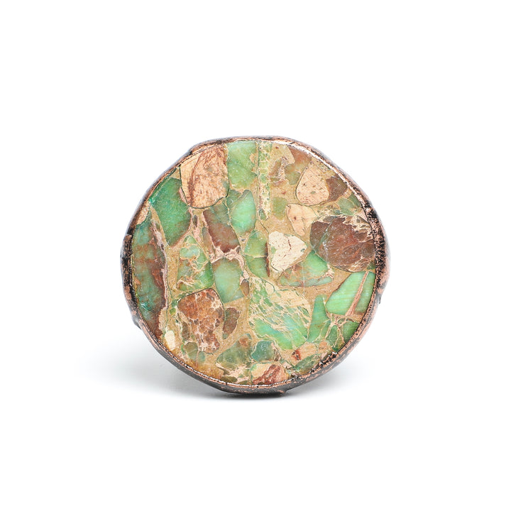 ARTLUMINNA presents the Stratum Guardian Ring, a circular tribute to the earth's enduring strength. Pakistani peridot and Madagascar citrine intertwine in a harmonious dance, their green and yellow hues echoing the vibrant energy of living landscapes. Hand-set in a seamless band that symbolizes the earth's protective embrace, this ring carries the wisdom of ancient strata. Wear it during moments of uncertainty or transition, as these minerals are traditionally believed to promote stability and renewal. Let its circular form remind you of nature's endless cycles, inspiring you to move forward with grounded confidence and inner peace.