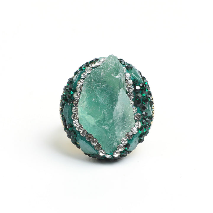 An Asian artist's tribute to primal beauty finds raw expression through master artisans' elemental craftsmanship, embodying ARTLUMINNA's philosophy of uniting organic forms with untamed elegance. This compelling ring features a raw Brazilian green quartz preserved in its natural crystalline formation, showcasing the stone's rugged texture and deep emerald hue reminiscent of untouched rainforest canopies. The uncut quartz specimen is thoughtfully set in a titanium framework that follows its organic contours, allowing the crystal's raw power to command attention. Senior artisans employed specialized setting techniques to secure the substantial specimen while maintaining its authentic, unpolished character. The raw green quartz is traditionally considered to carry vital earth energy and adventurous spirit, symbolizing nature's enduring strength and wild wisdom. Worn as a connection to the untamed world, this ring accompanies modern explorers in embracing their bold authenticity and maintaining their bond with nature's primal forces. The exclusive creation carries identification AL-RG-018.